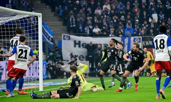 第57分鐘,金玟哉犯規(guī),被出示黃牌。8分鐘后,拜仁差一點進球,只可惜于帕梅卡諾的射門擊中了門框。之后拜仁差一點被絕殺,幸好阿方索-戴維斯在門線做出極限解圍,化解險情。最終,拜仁2-2漢堡,爆出冷門。