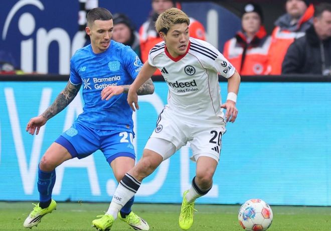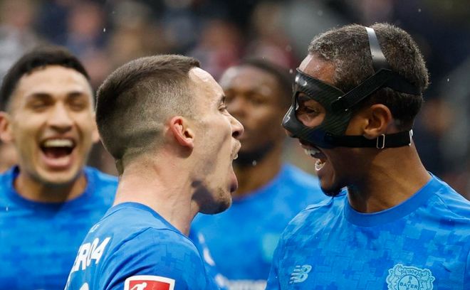 勒沃庫(kù)森反客為主,在第26分鐘率先取得進(jìn)球。格里馬爾多在送出腳后跟妙傳,阿圖爾禁區(qū)右側(cè)小角度射門打進(jìn)。只過了7分鐘,勒沃庫(kù)森再次進(jìn)球!馬里克-蒂爾曼在禁區(qū)線上接到科法內(nèi)的回傳球,直接推射近角,球又進(jìn)了!門將的視線受到干擾,只能眼睜睜看著皮球入網(wǎng)。半場(chǎng)結(jié)束,勒沃庫(kù)森2-0領(lǐng)先法蘭克福。