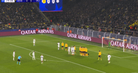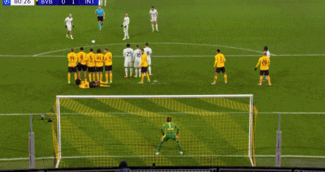 自三冠王賽季的斯內(nèi)德以來(lái),國(guó)米首次歐冠客場(chǎng)打進(jìn)直接任意球